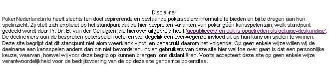 Wilt u nu al verder met Texas Hold’m poker of een andere variant? Klik dan op onderstaande banner. En krijg een leuke welkomsbonus op de koop toe.